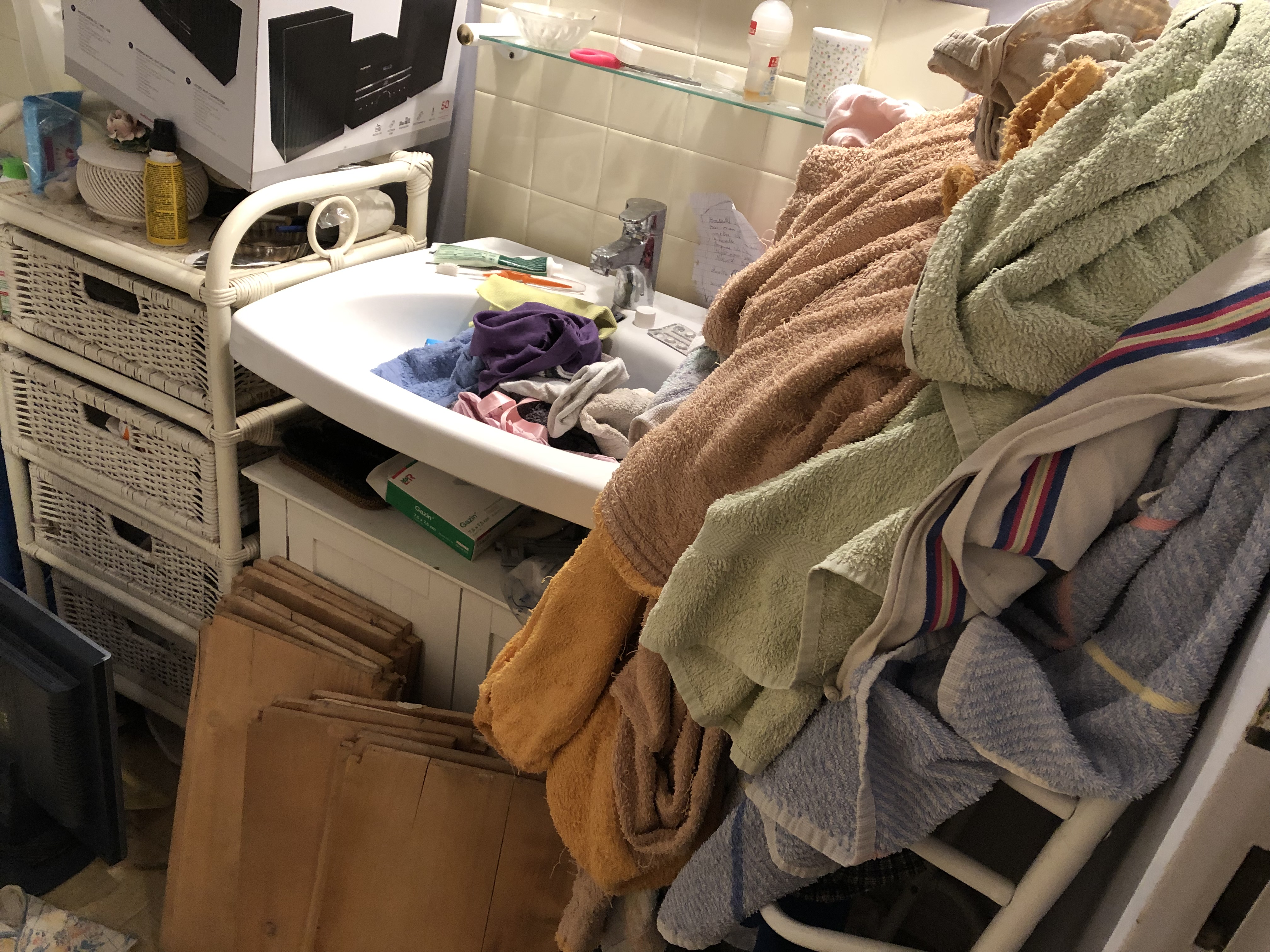 Tri et nettoyage dans une salle de bain